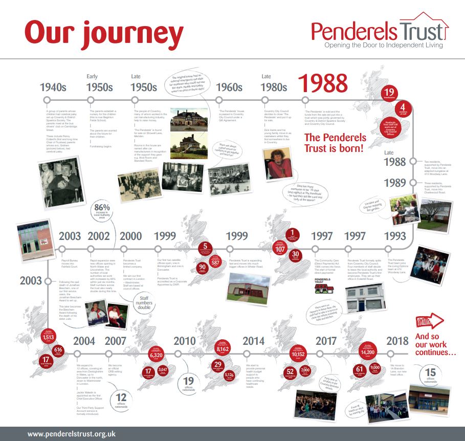 Penderels Trust was formed as a charitable trust in 1988 as a partnership between Coventry and District Spastics Society (now Scope) and Coventry City Council. The trust managed a 9-bed rehabilitation unit supporting primarily younger people with disabilities and adults with an acquired brain injury, helping them to develop their independent living skills. Coventry City Council supplied the staff and resources to fund the trust’s activities.